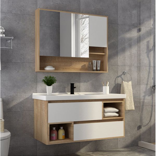 High Plasticity Free Standing Bathroom Cabinet Mirrored Single Sink